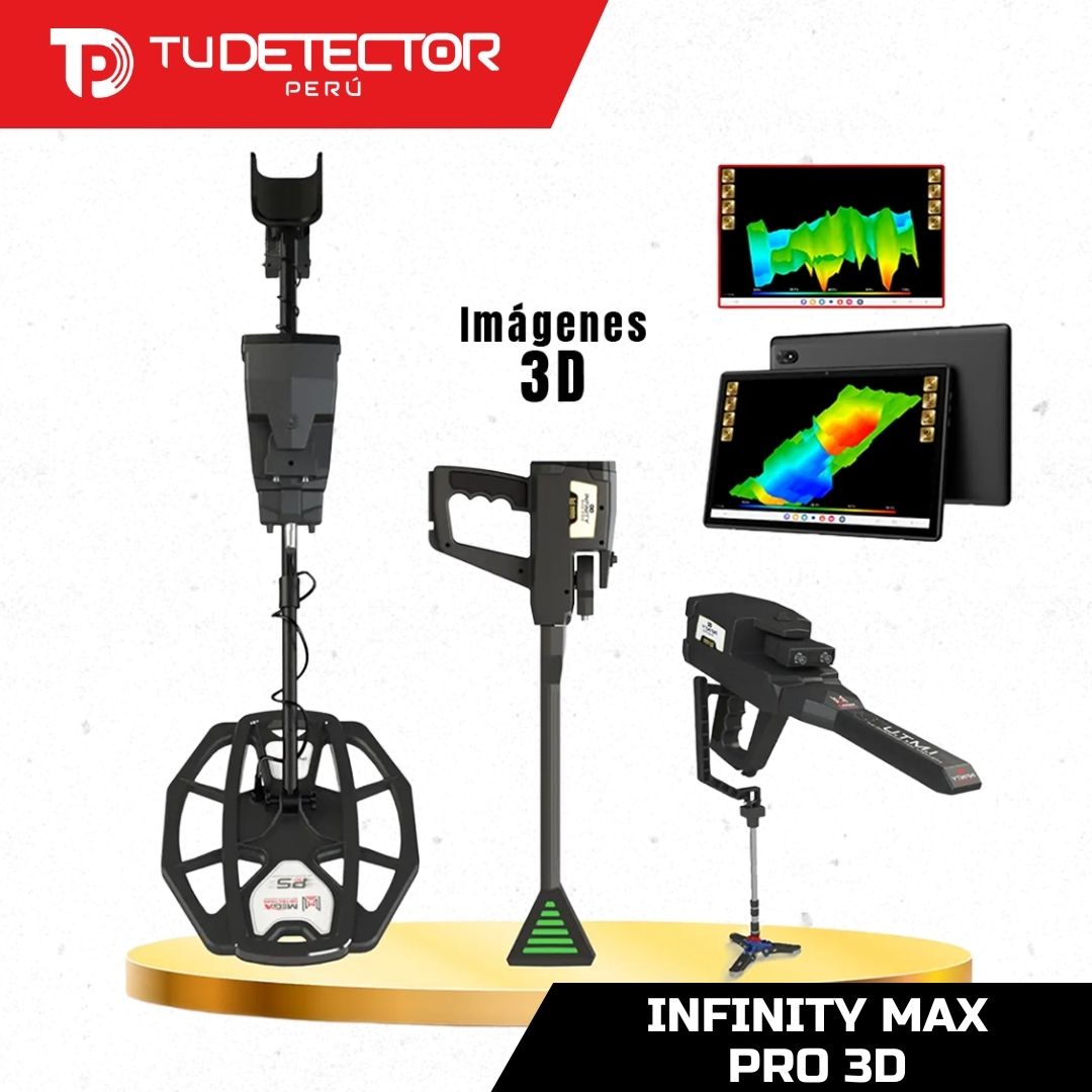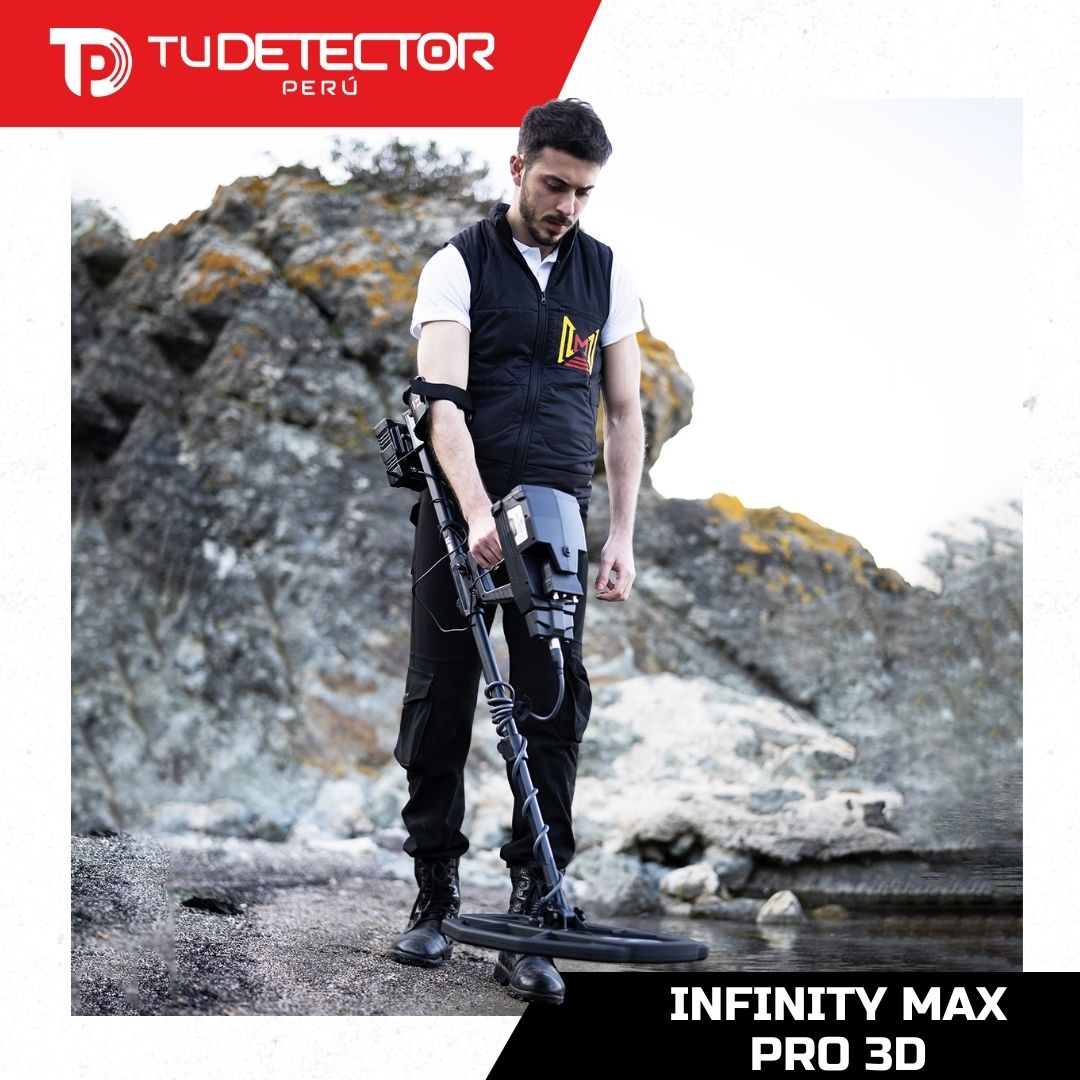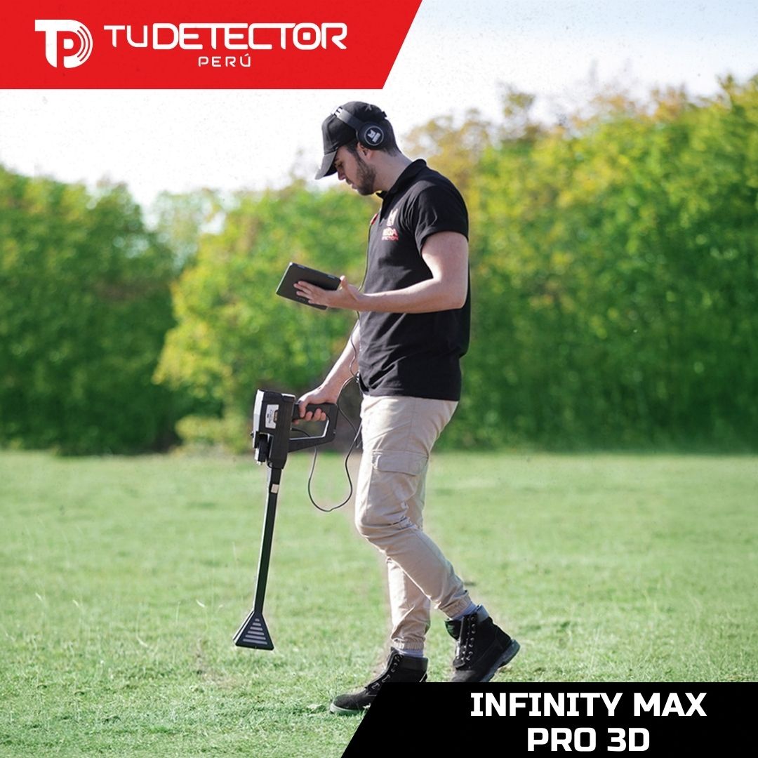 Infinity Max Pro es un detector de metales multi-sistema profesional, fabricado en Alemania para los que buscan profundo y con precisión. Combina escaneo 3D del terreno, localizador de largo alcance, pinpointer, inducción por pulsos, geofísica y detección inteligente en un solo equipo ergonómico. Permite explorar hasta 50 m de profundidad y cubrir hasta 3 000 m² por sesión, con visualización avanzada vía pantalla integrada o app Android.
